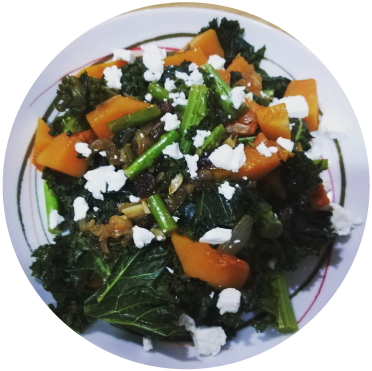 Añadir queso feta, salsa de soja y unas semillas de sésamo