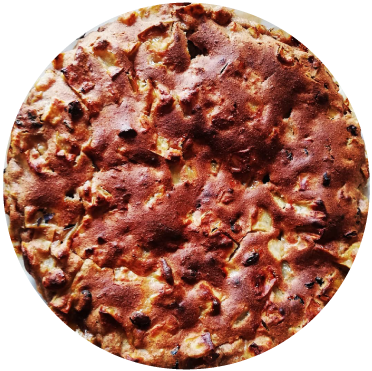 175 grs de harina integral 3 huevos 1 sobre de levadura 40 ml de bebida de avena 30 ml de aceite Pasta de dátiles (dejar 12 dátiles a remojo la noche anterior y triturar) Mezclar y Batir estos ingresientes y luego se añaden 2 manzanas a trozos, pasas, arándanos, avellanas...